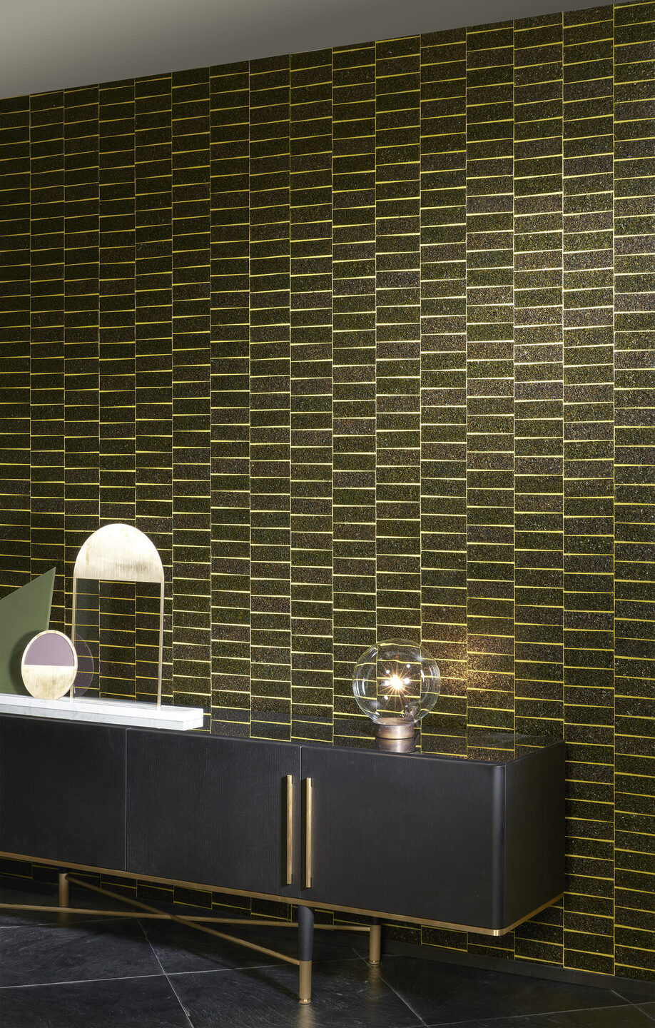 • Beschrijving: Handgemaakte muurbekleding met micaschilfers