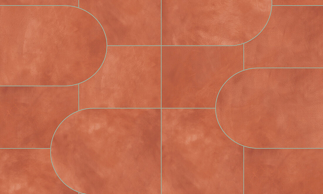 • Beschrijving: Een fluweelzachte print in suède-look die perfect aansluit bij de actuele trend om rechte lijnen en ronde vormen te mixen