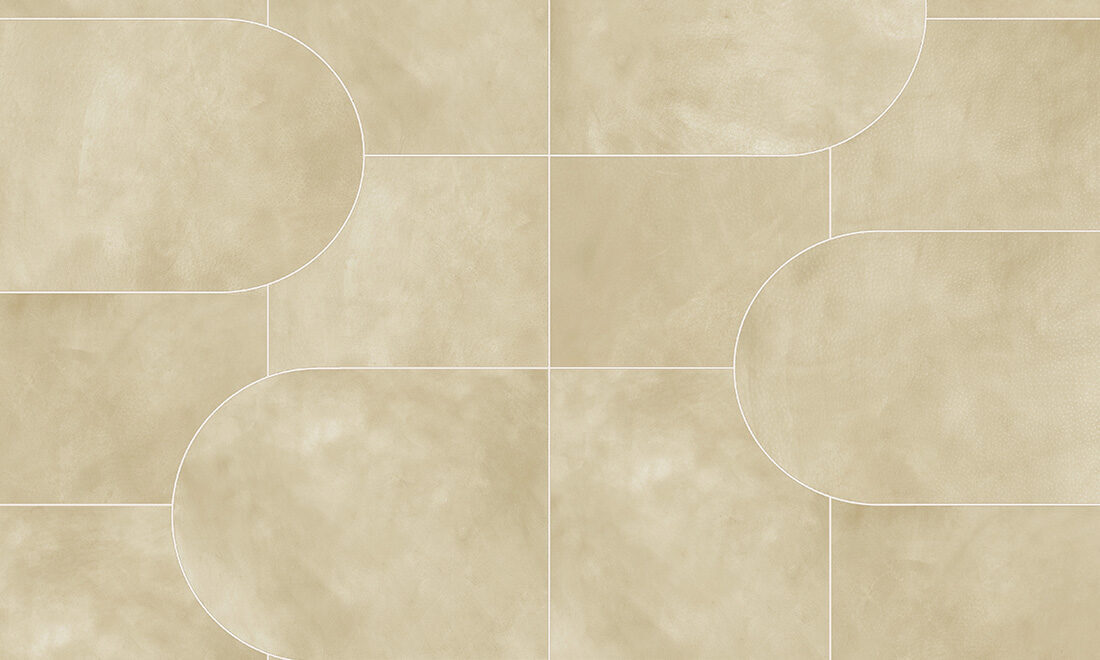 • Beschrijving: Een fluweelzachte print in suède-look die perfect aansluit bij de actuele trend om rechte lijnen en ronde vormen te mixen